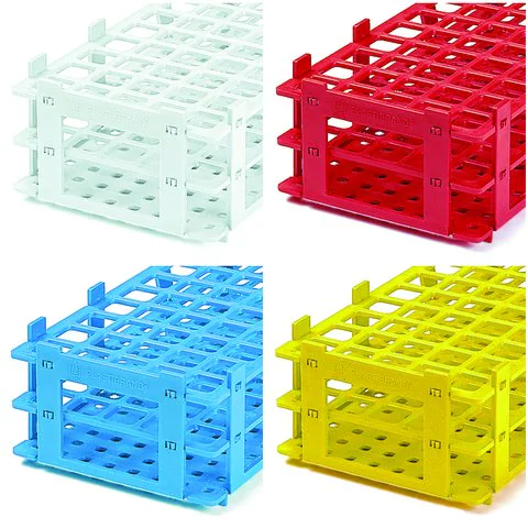 | General description【一般描述】 | 可用于一般直径试管的多功能且价格便宜的试管架。坚固的结构,可堆叠。 聚丙烯架子可卡扣在一起(三件式),易于组装,坚固耐用,可堆叠,并提供四种颜色。不会漂浮在水浴中。带有字母数字位置标识,可清楚地识别样品。位置之间就较大间隔。 工作温度:-20至90ºC。可在121ºC高温高压灭菌。 |
